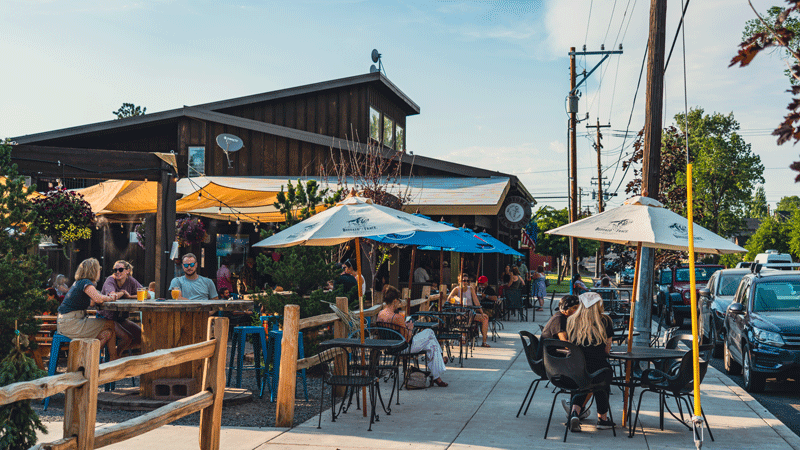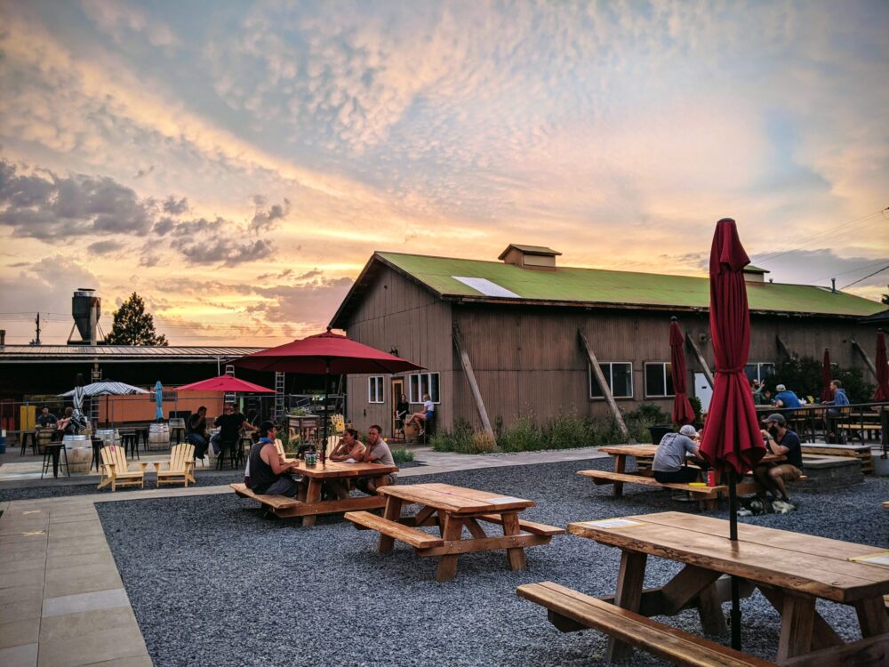 On Tap is located on Bend’s east side and boasts a large selection of local taps, family-friendly play spaces, and more than half a dozen food trucks. The setting is casual, with gorgeous mountain views and communal picnic tables.